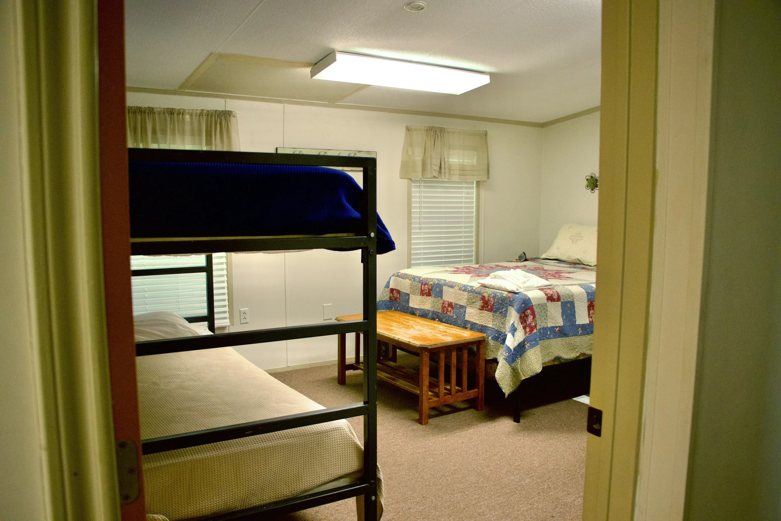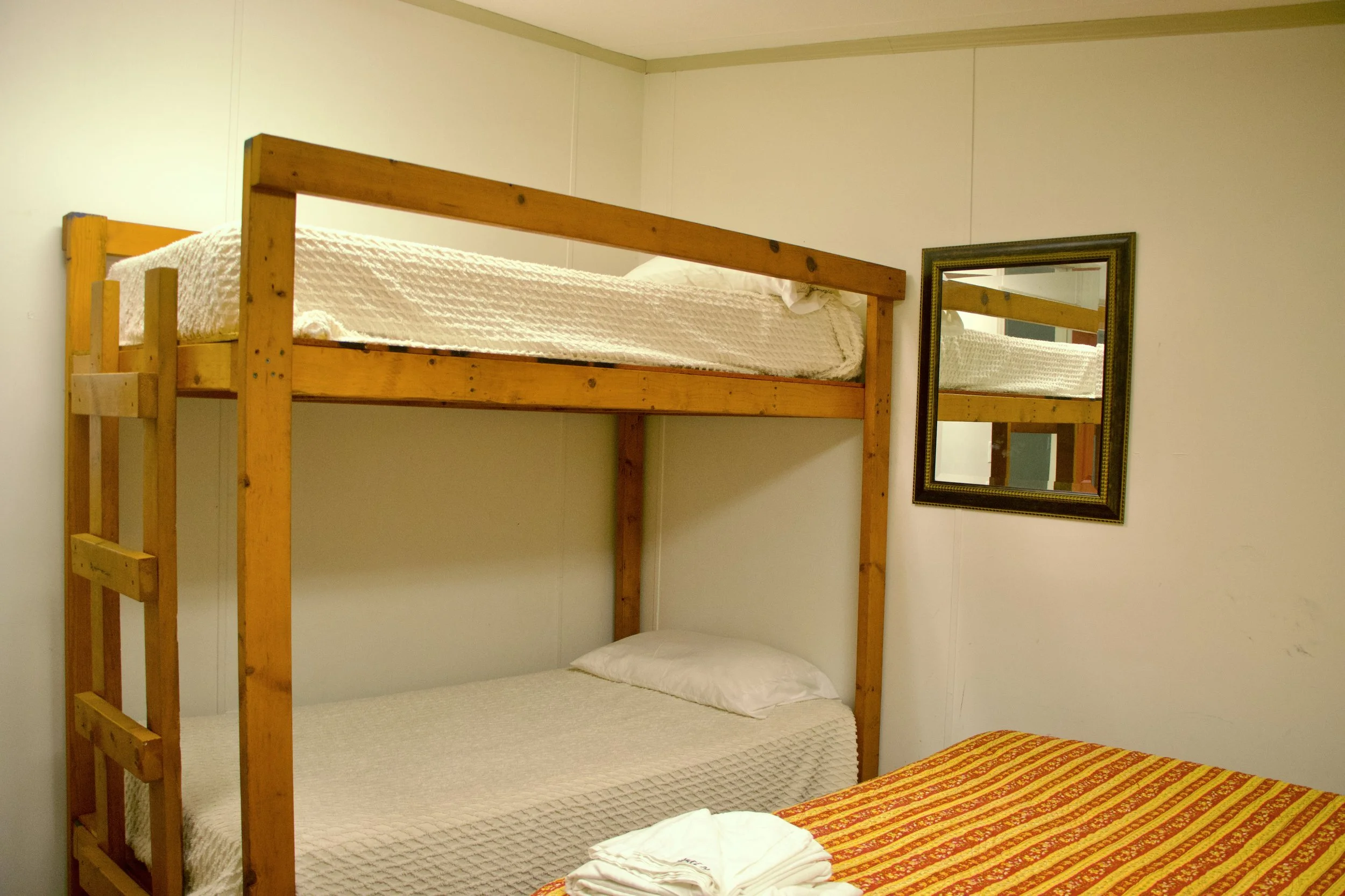 2 separate sleeping rooms (can be rented individually) with 8 bunk beds and 2 twins per room (36 beds total, for both sides of the cabin)