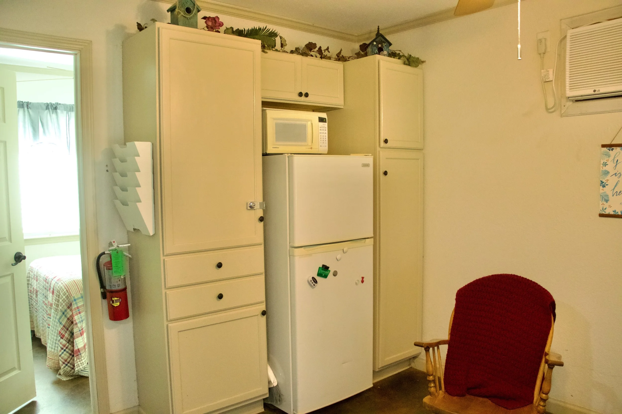 No Kitchen, but it does include a refrigerator, coffee maker, and microwave.
